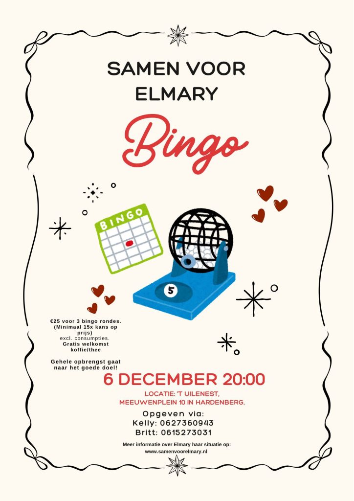 Lieve allemaal, wij zijn druk bezig geweest met het organiseren van een bingo voor de crowdfunding van Elmary.